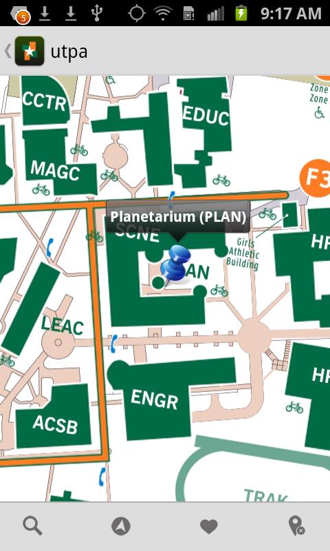 搜索,锅和放大校园建筑,并查明其地址。如果您的设备已启用GPS,则可以找到确切的位置并获取通往建筑物的方向。